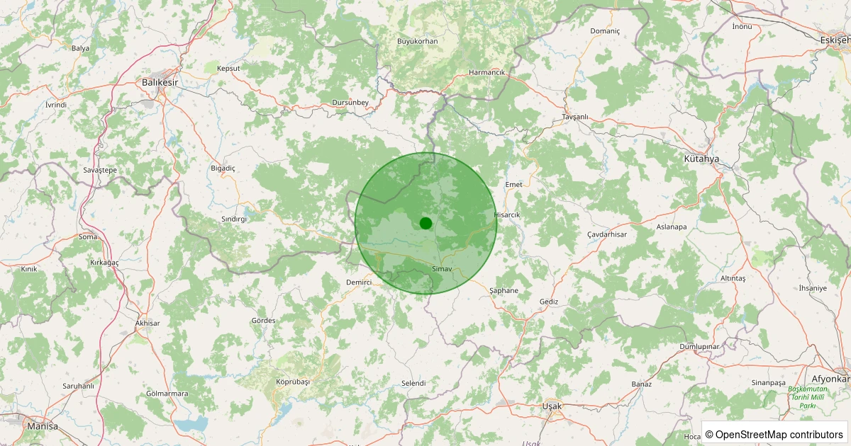 Son 7 gün içinde Simav - Koyunoba Köyü noktasından 100 km yarıçap içerisinde meydana gelen diğer depremler: