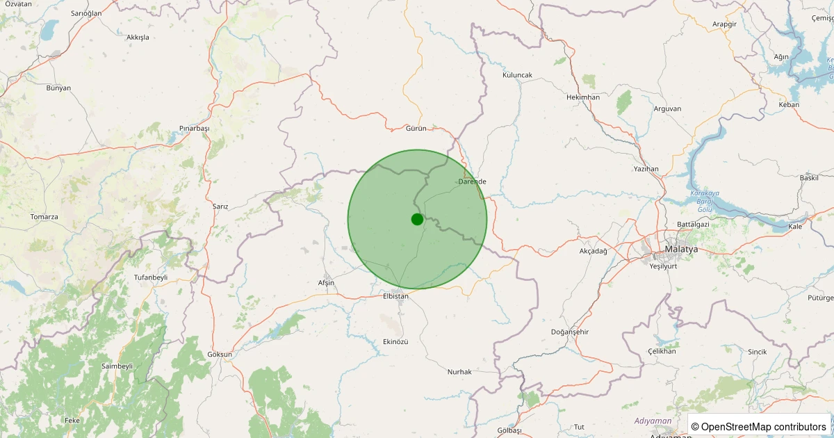 Son 7 gün içinde Elbistan - Gökcek Köyü noktasından 100 km yarıçap içerisinde meydana gelen diğer depremler:
