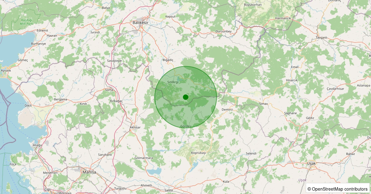 Son 7 gün içinde Sındırgı - Yüreğil/Yeni noktasından 100 km yarıçap içerisinde meydana gelen diğer depremler: