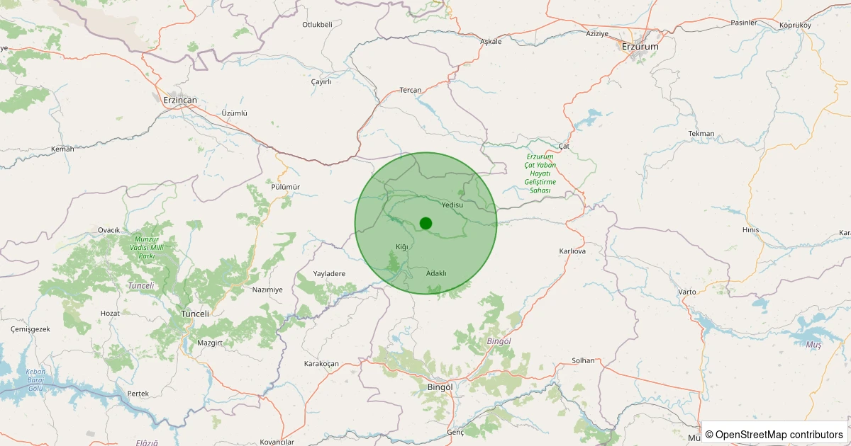 EMSC üzerinden alınan ölçümlere göre Kiğı - İlbeyi Köyü bölgesinde 26.04.2026 08:05 tarihinde gündüz saatlerinde 2.7 büyüklüğünde bir deprem meydana geldi.