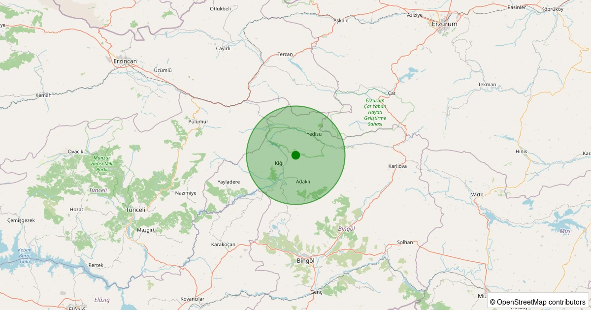 Son 7 gün içinde Adaklı - Aysaklı Köyü noktasından 100 km yarıçap içerisinde meydana gelen diğer depremler: