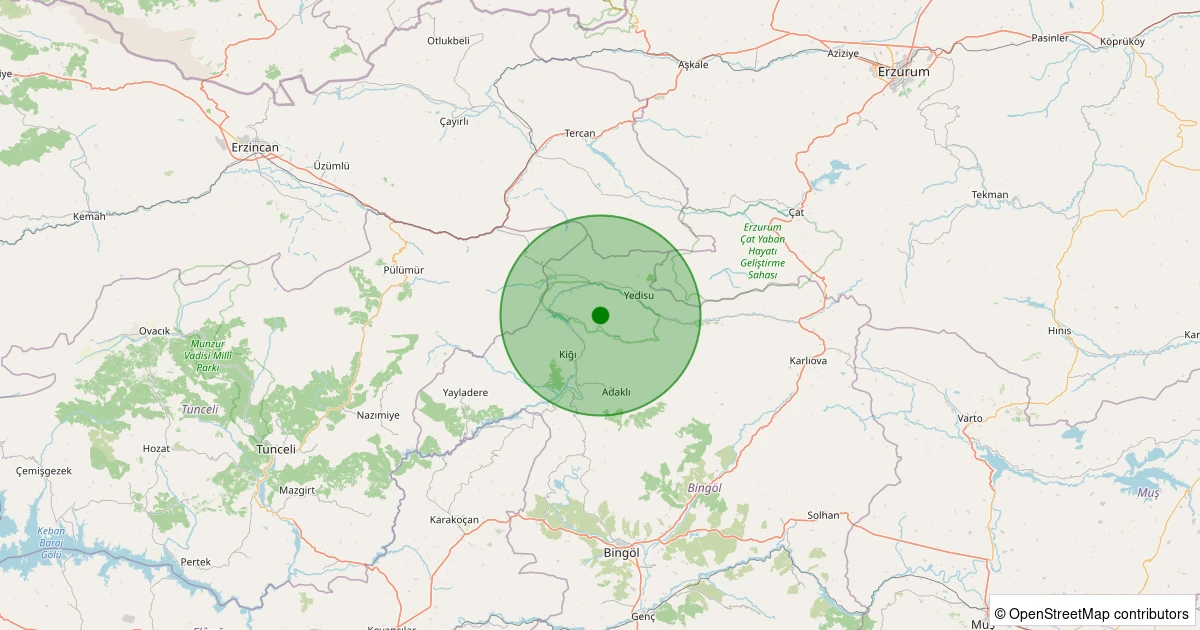 Son 7 gün içinde Kiğı - İlbeyi Köyü noktasından 100 km yarıçap içerisinde meydana gelen diğer depremler: