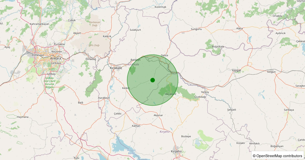 Son 7 gün içinde Keskin - Barakobası Köyü noktasından 100 km yarıçap içerisinde meydana gelen diğer depremler:
