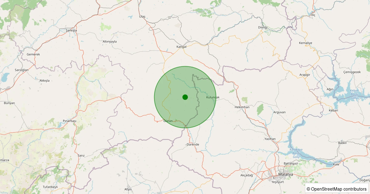Son 7 gün içinde Gürün - Dayakpınar Köyü noktasından 100 km yarıçap içerisinde meydana gelen diğer depremler: