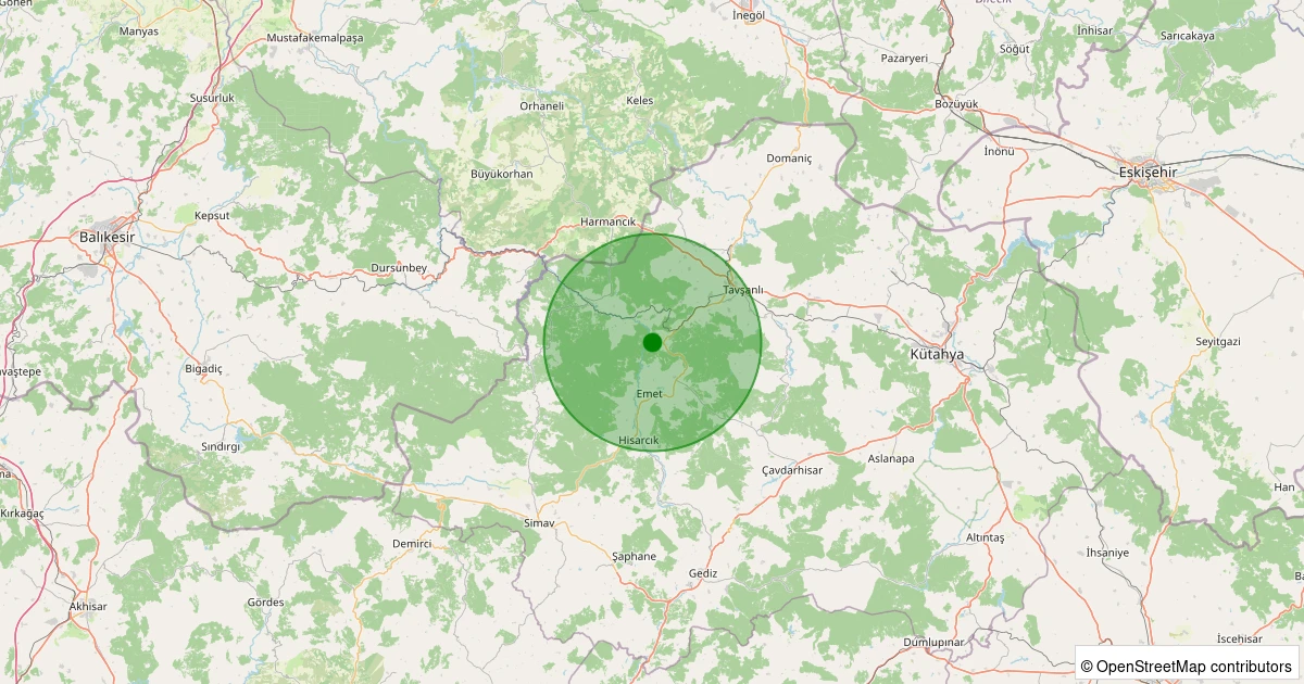 Son 7 gün içinde Emet - Dereli Köyü noktasından 100 km yarıçap içerisinde meydana gelen diğer depremler: