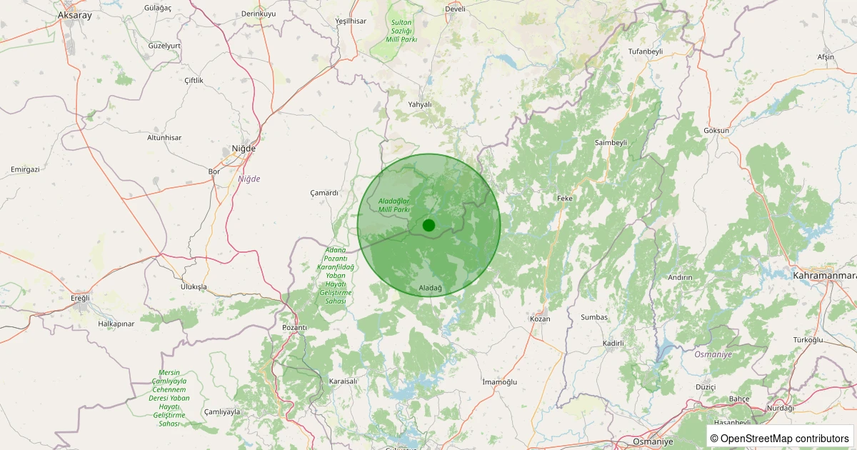 Son 7 gün içinde Yahyalı - Büyük Çakır noktasından 100 km yarıçap içerisinde meydana gelen diğer depremler: