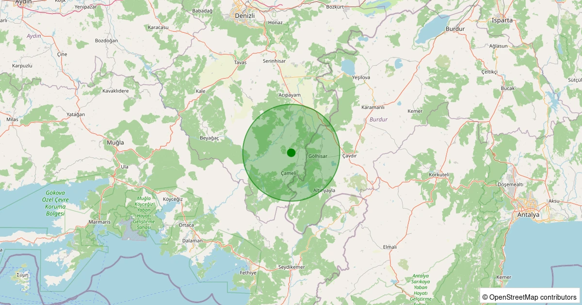 Son 7 gün içinde Çameli - Çamlıbel noktasından 100 km yarıçap içerisinde meydana gelen diğer depremler: