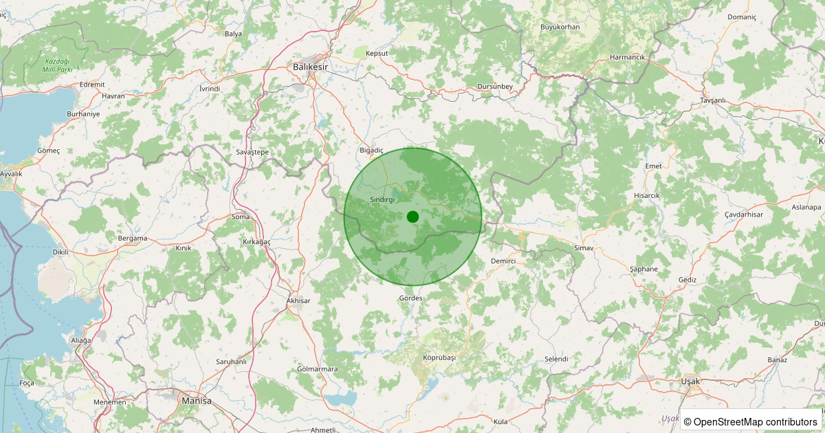 Son 7 gün içinde Sındırgı - Büyükdağdere noktasından 100 km yarıçap içerisinde meydana gelen diğer depremler: