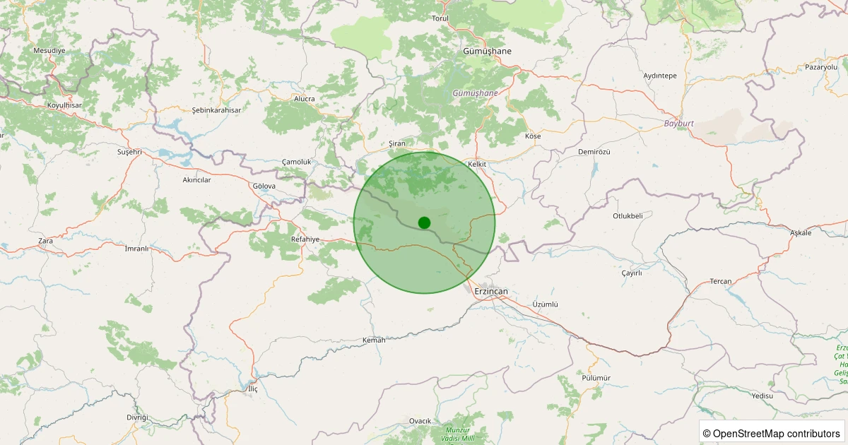 Son 7 gün içinde Kelkit - Gürleyik Köyü noktasından 100 km yarıçap içerisinde meydana gelen diğer depremler: