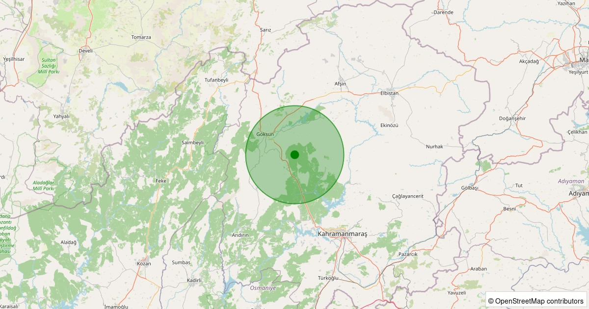 Son 7 gün içinde Onikişubat - Döngel noktasından 100 km yarıçap içerisinde meydana gelen diğer depremler: