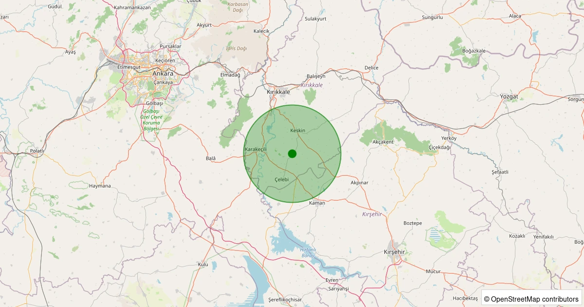 Son 7 gün içinde Keskin - Ceritkale Köyü noktasından 100 km yarıçap içerisinde meydana gelen diğer depremler: