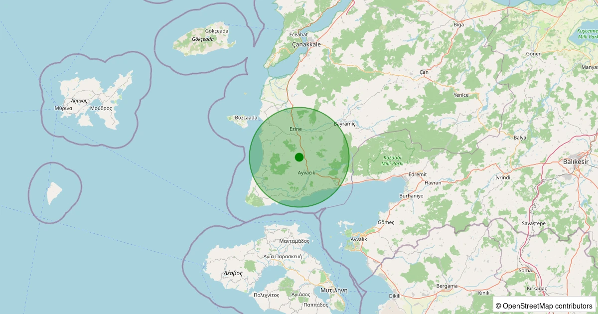 Son 7 gün içinde Ezine - Arasanlı Köyü noktasından 100 km yarıçap içerisinde meydana gelen diğer depremler: