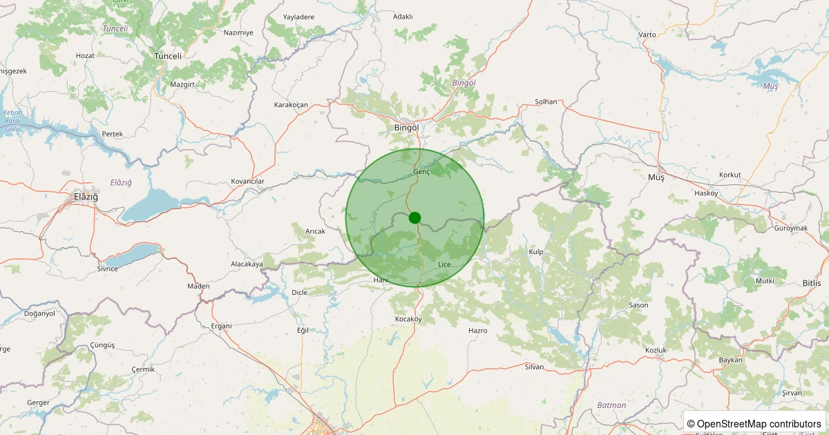 Son 7 gün içinde Genç - Yayla Köyü noktasından 100 km yarıçap içerisinde meydana gelen diğer depremler: