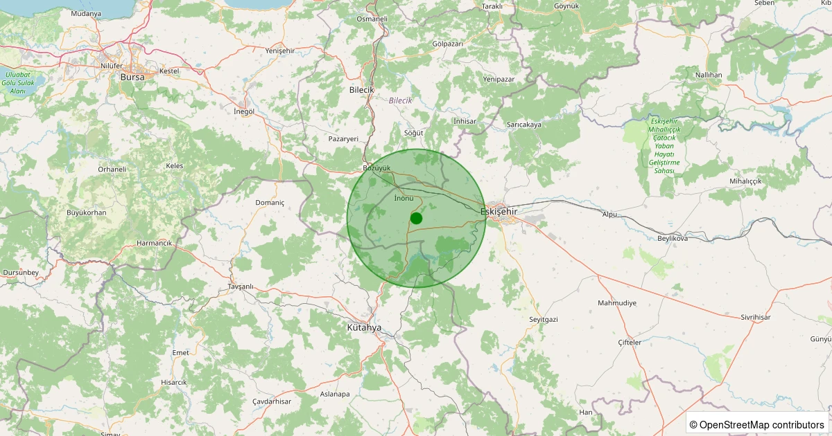 Son 7 gün içinde İnönü - Tutluca noktasından 100 km yarıçap içerisinde meydana gelen diğer depremler: