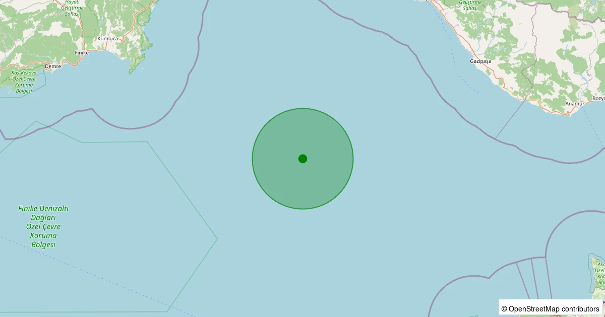 Son 7 gün içinde Akdeniz - [95.64 km] Alanya (Antalya) noktasından 100 km yarıçap içerisinde meydana gelen diğer depremler: