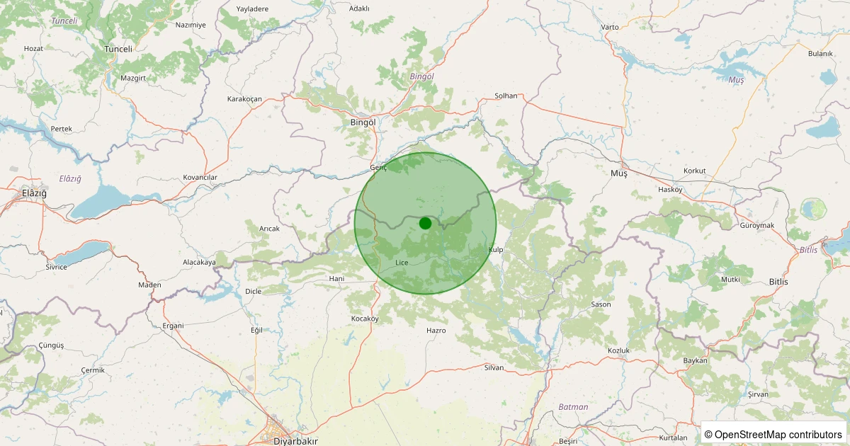 Son 7 gün içinde Lice - Ulucak Köyü noktasından 100 km yarıçap içerisinde meydana gelen diğer depremler: