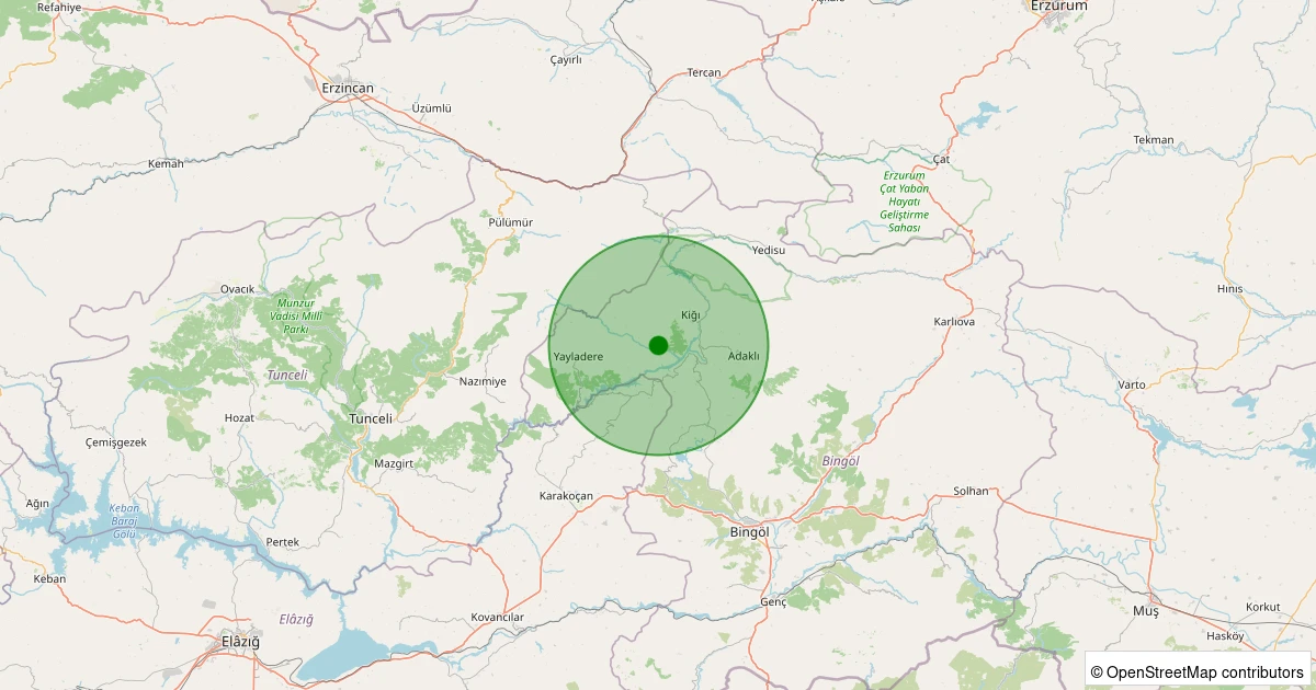 Son 7 gün içinde Kiğı - Yazgünü Köyü noktasından 100 km yarıçap içerisinde meydana gelen diğer depremler: