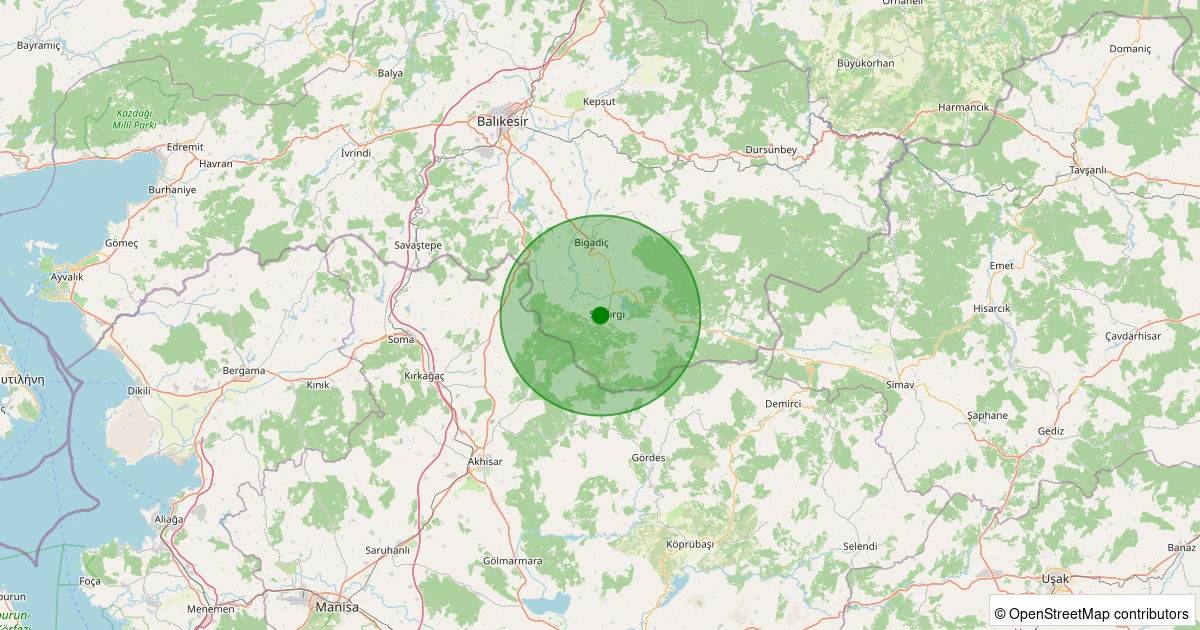 Son 7 gün içinde Sındırgı noktasından 100 km yarıçap içerisinde meydana gelen diğer depremler: