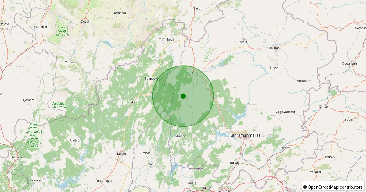 Son 7 gün içinde Göksun - Küçükçamurlu noktasından 100 km yarıçap içerisinde meydana gelen diğer depremler: