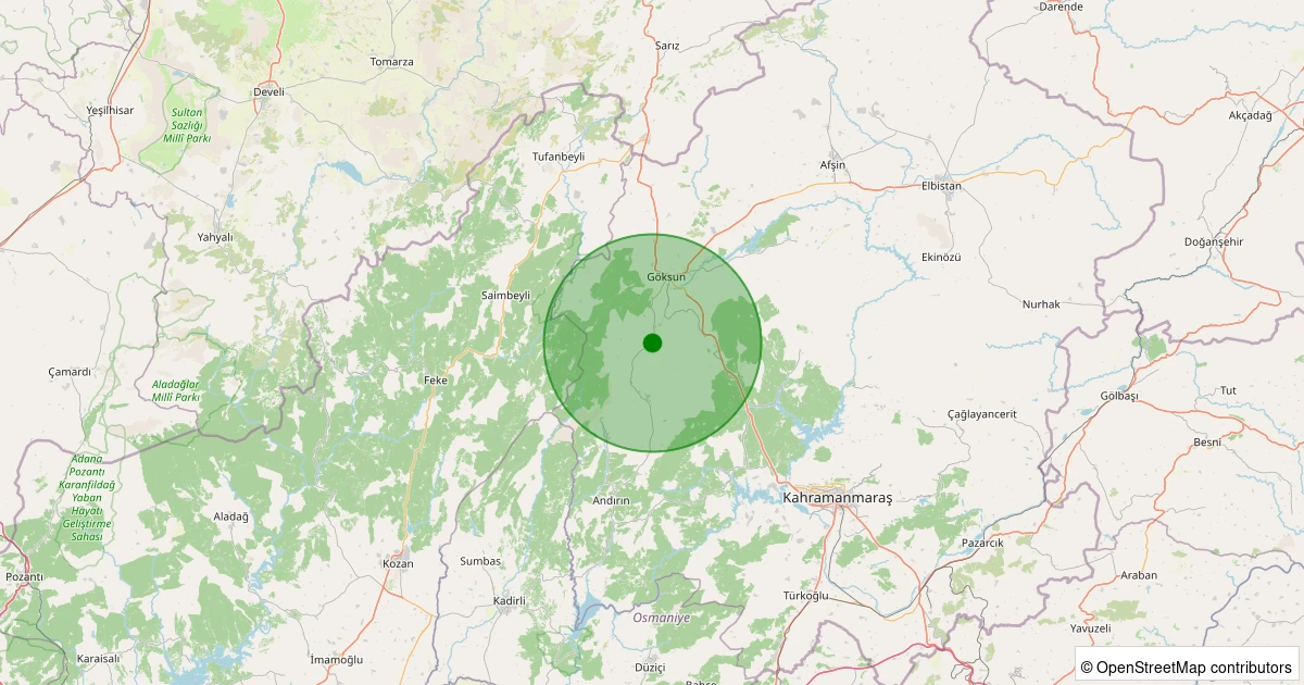 Son 7 gün içinde Göksun noktasından 100 km yarıçap içerisinde meydana gelen diğer depremler: