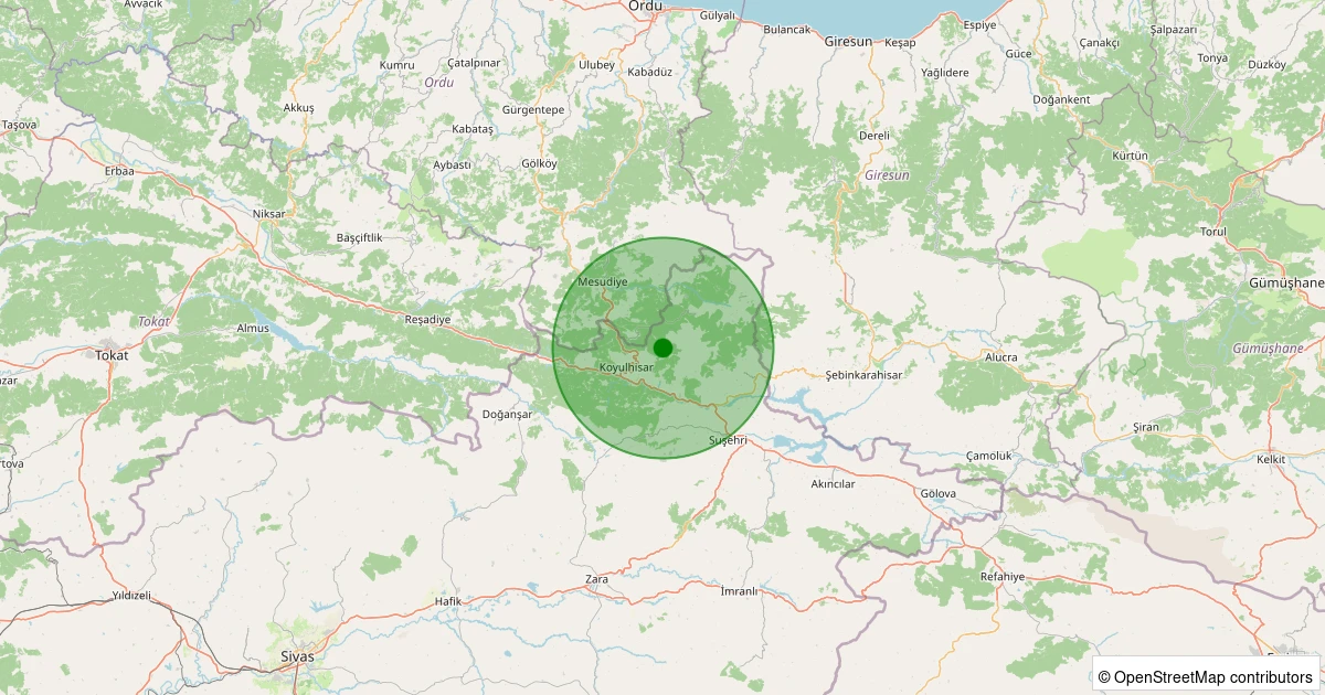 Son 7 gün içinde Koyulhisar - Kadife Köyü noktasından 100 km yarıçap içerisinde meydana gelen diğer depremler: