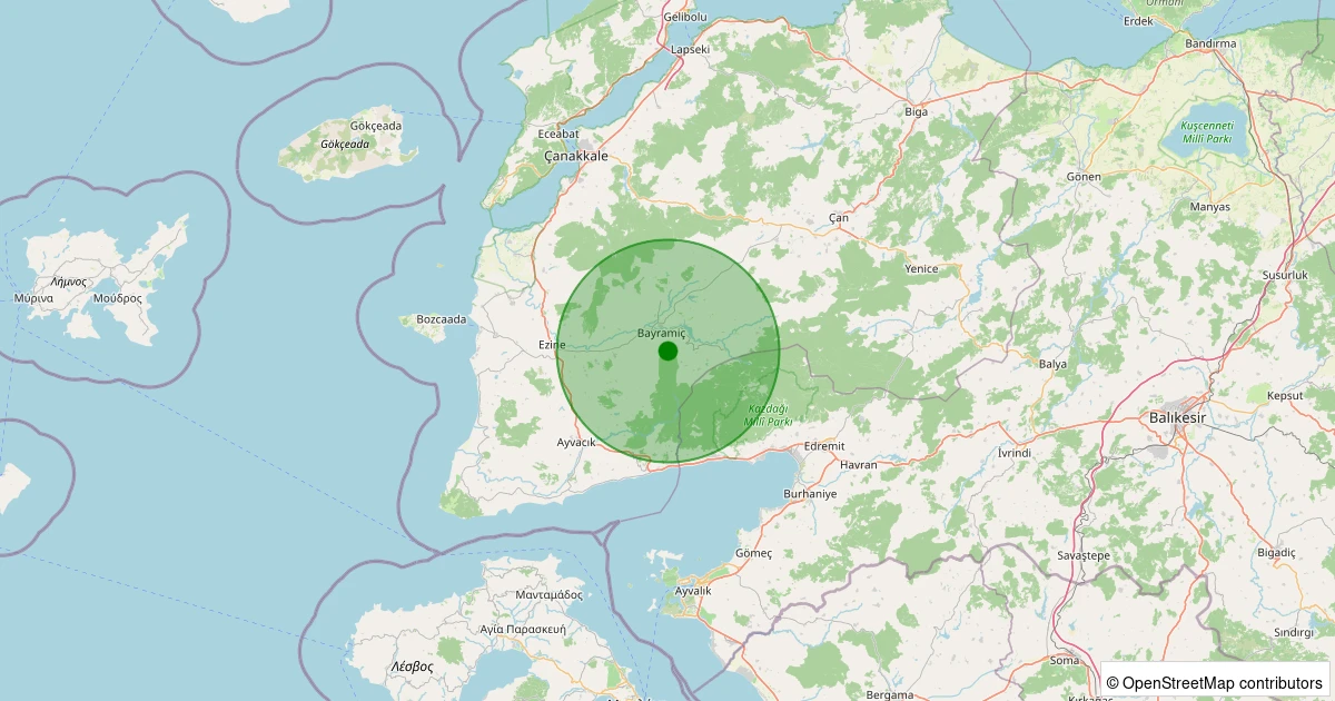Son 7 gün içinde Bayramiç - Örenli Köyü noktasından 100 km yarıçap içerisinde meydana gelen diğer depremler: