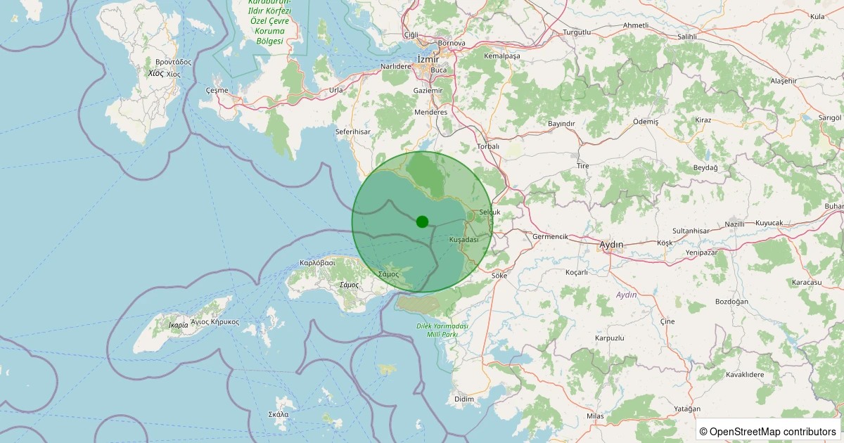 Son 7 gün içinde KUSADASI noktasından 100 km yarıçap içerisinde meydana gelen diğer depremler: