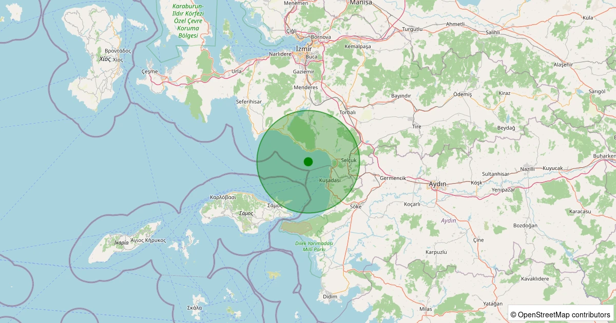 Son 7 gün içinde Ege Denizi - Kuşadası Körfezi - [08.41 km] Menderes (İzmir) noktasından 100 km yarıçap içerisinde meydana gelen diğer depremler: