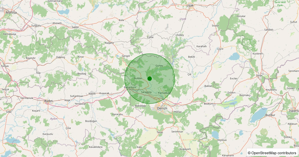 Son 7 gün içinde Buldan - Yenicekent noktasından 100 km yarıçap içerisinde meydana gelen diğer depremler: