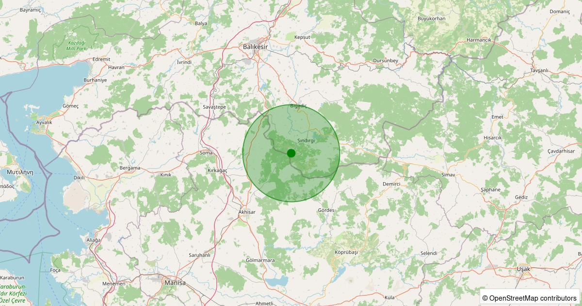 Son 7 gün içinde Sındırgı - Kertil noktasından 100 km yarıçap içerisinde meydana gelen diğer depremler: