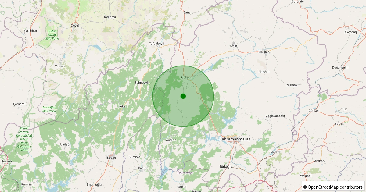 Son 7 gün içinde Onikişubat - Kumarlı noktasından 100 km yarıçap içerisinde meydana gelen diğer depremler: