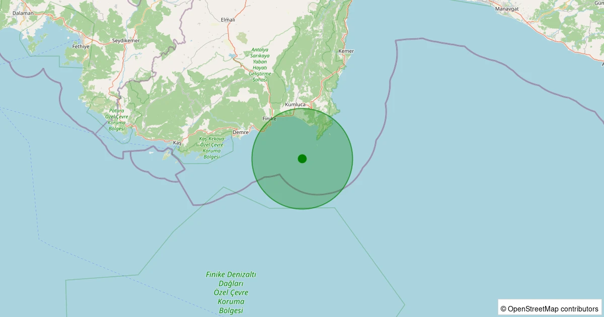 Son bir hafta içerisinde Akdeniz - [20.43 km] Kumluca (Antalya) noktasından 100 km yarıçap içerisinde toplamda 22 deprem kaydedilmiştir. Bu depremlerden en büyüğü 2.8 büyüklüğünde ve en sığ odaklısı 5.00 kilometre derinlikte gerçekleşmiştir.