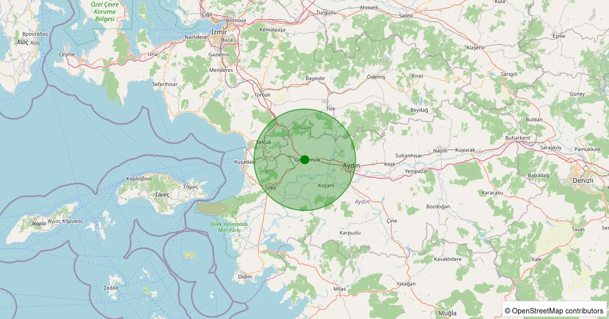 Son 7 gün içinde Germencik - Hıdırbeyli noktasından 100 km yarıçap içerisinde meydana gelen diğer depremler: