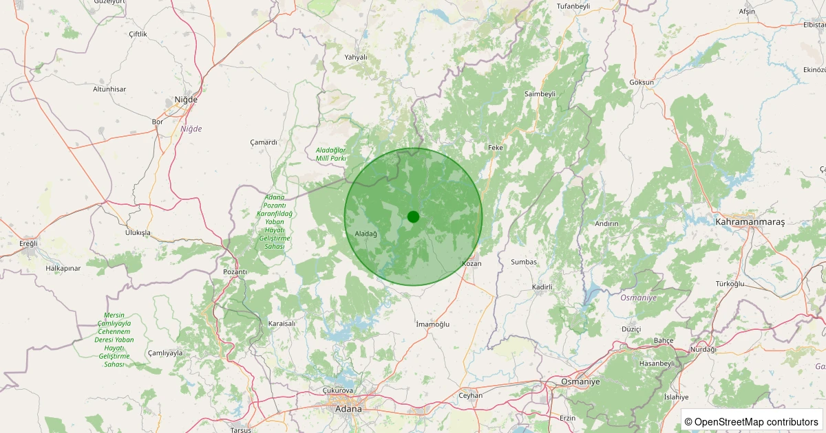 Son 7 gün içinde Kozan - Gökgöz noktasından 100 km yarıçap içerisinde meydana gelen diğer depremler: