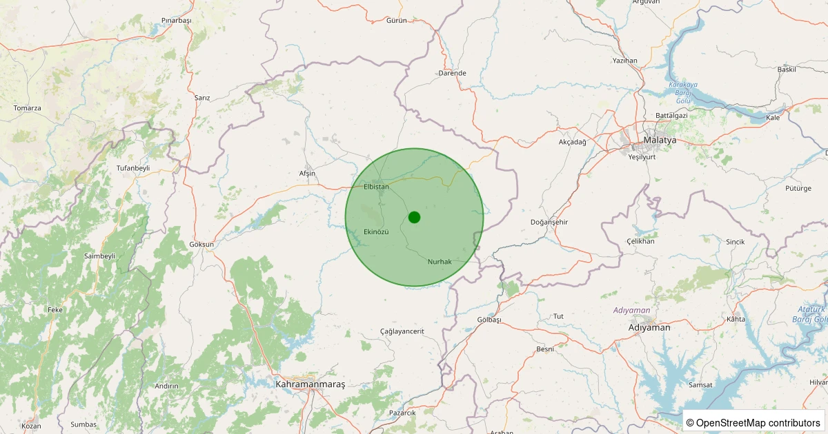 Son 7 gün içinde Nurhak - Ağcaşar Köyü noktasından 100 km yarıçap içerisinde meydana gelen diğer depremler: