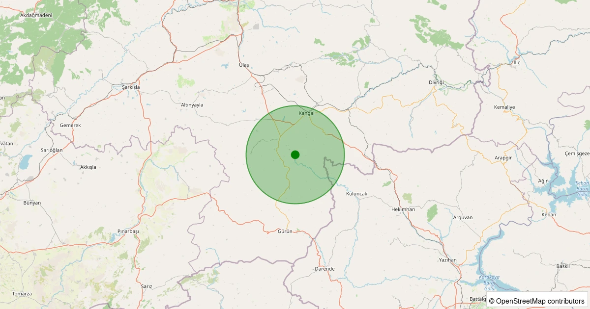 Son 7 gün içinde Kangal - Turnalı Köyü noktasından 100 km yarıçap içerisinde meydana gelen diğer depremler: