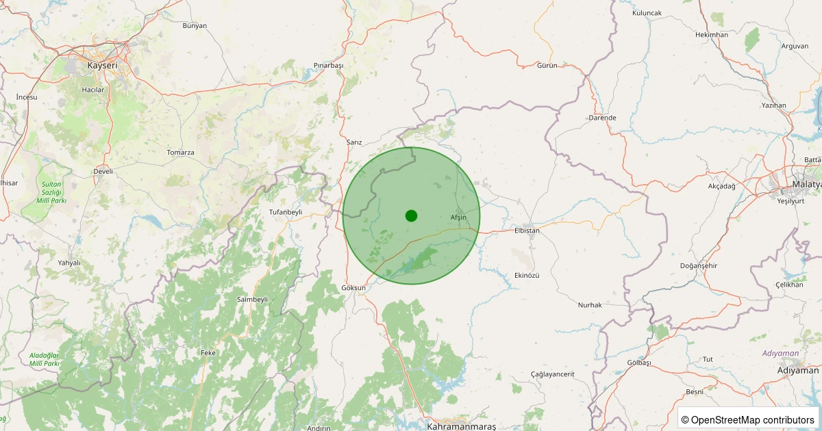 Son 7 gün içinde Afşin noktasından 100 km yarıçap içerisinde meydana gelen diğer depremler: