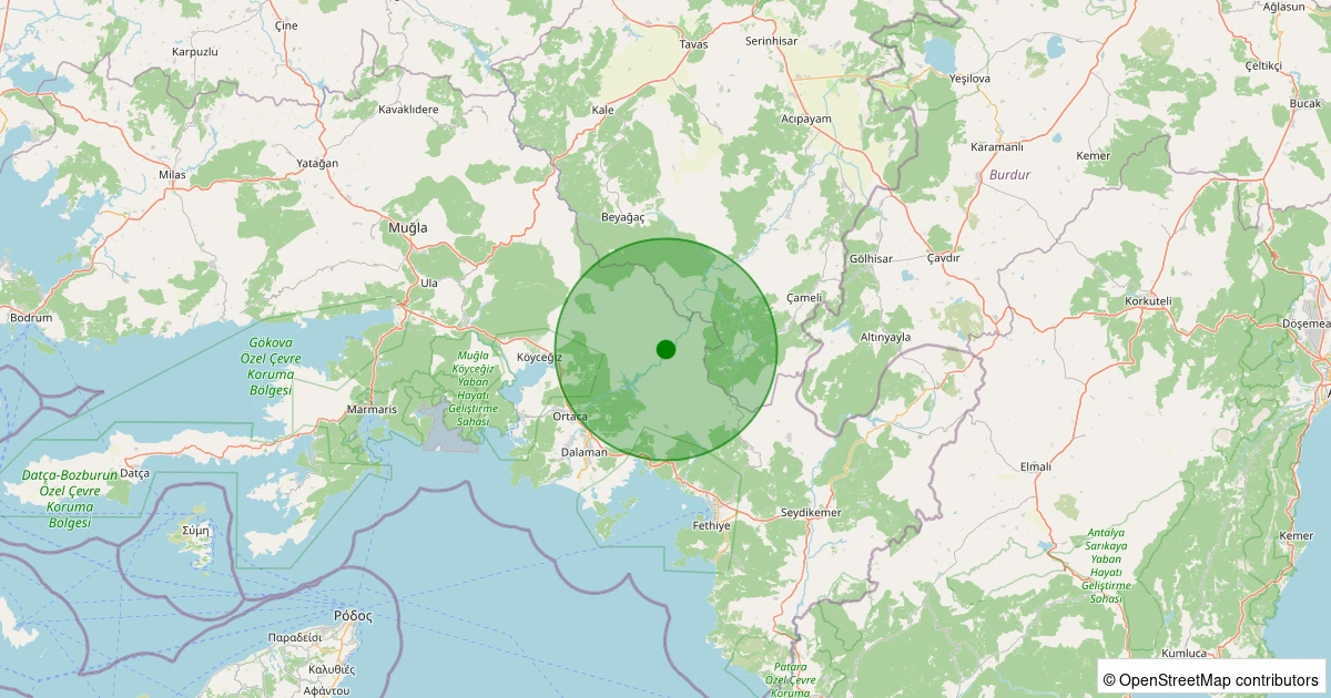 Son 7 gün içinde Köyceğiz - Otmanlar noktasından 100 km yarıçap içerisinde meydana gelen diğer depremler: