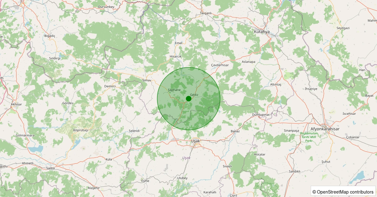 Son 7 gün içinde Gediz - Çeltikçi Köyü noktasından 100 km yarıçap içerisinde meydana gelen diğer depremler:
