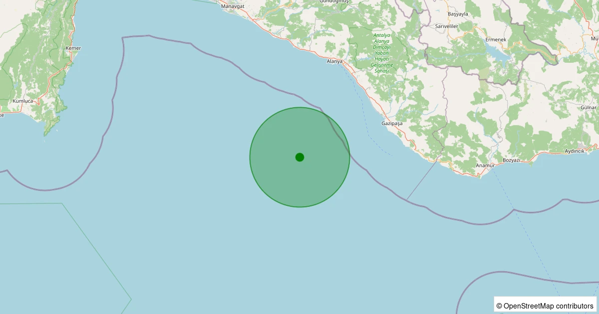 Kandilli üzerinden alınan ölçümlere göre ANTALYA bölgesinde 29.04.2026 23:30 tarihinde gece saatlerinde 3.2 büyüklüğünde bir deprem meydana geldi.