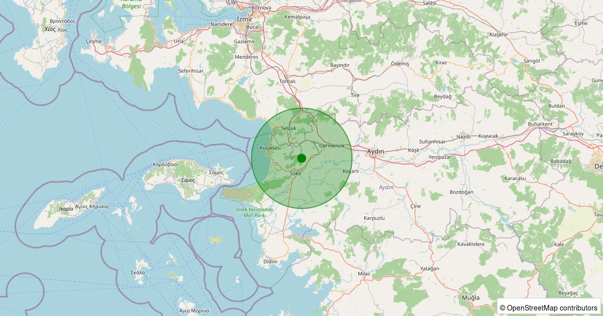 Son 7 gün içinde Söke - Sazlıköy noktasından 100 km yarıçap içerisinde meydana gelen diğer depremler: