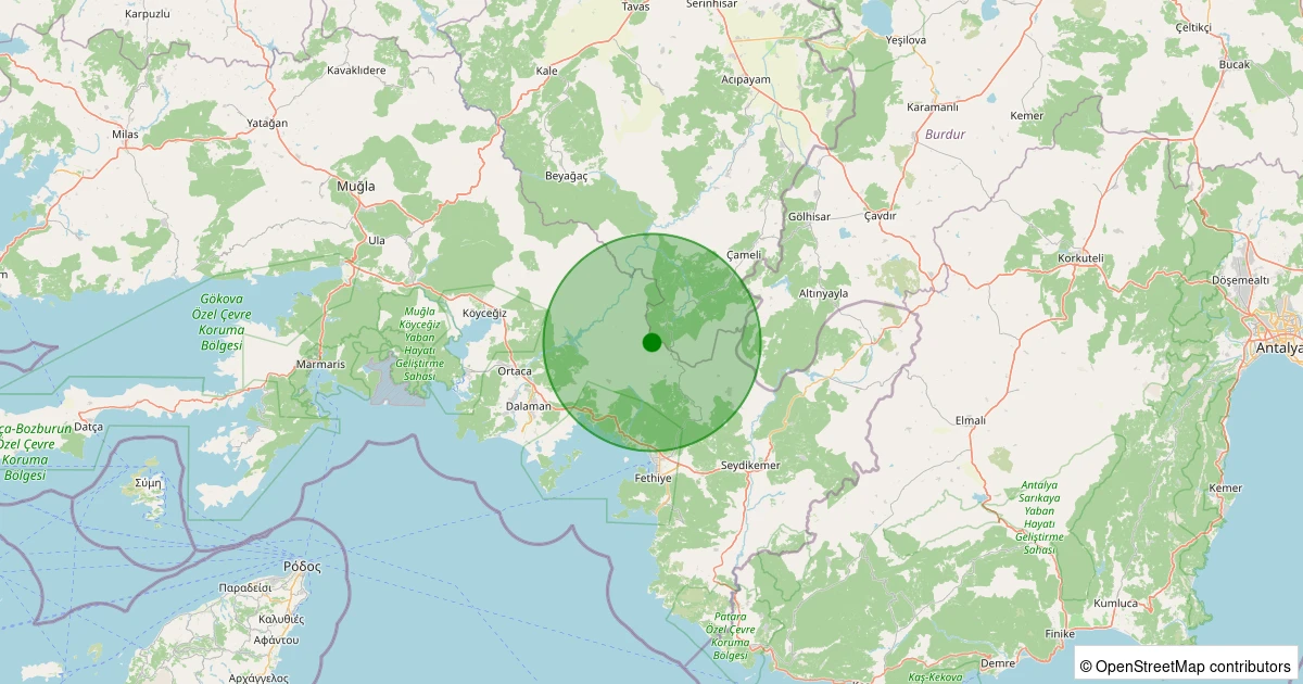 Son 7 gün içinde Dalaman - Taşbaşı noktasından 100 km yarıçap içerisinde meydana gelen diğer depremler: