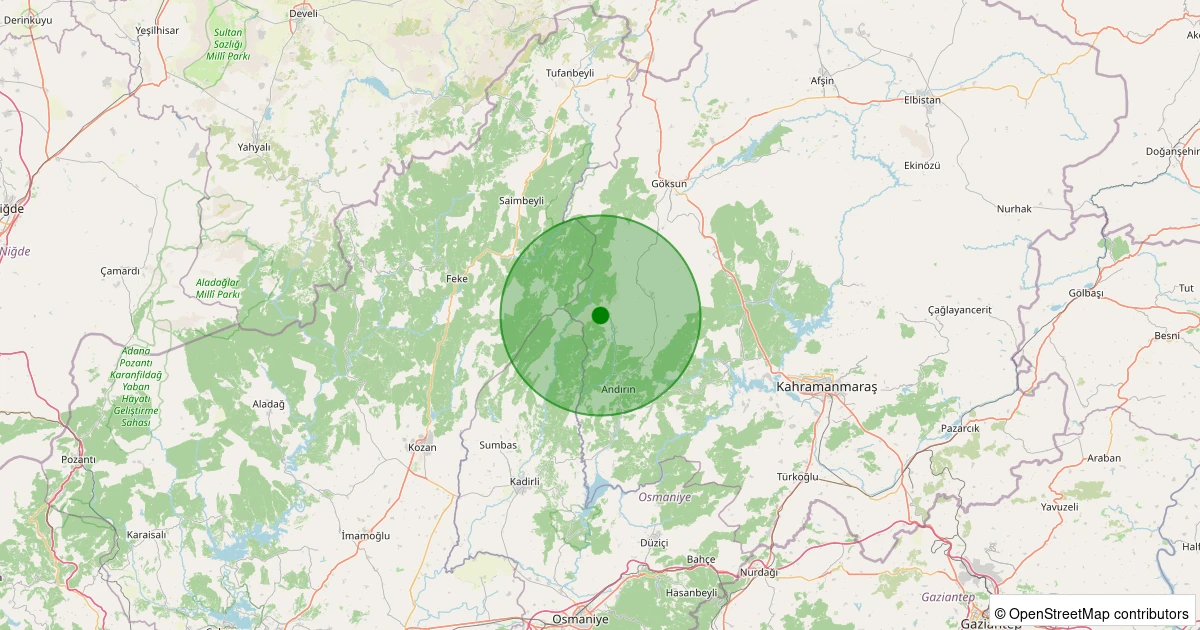 Son 7 gün içinde Andırın noktasından 100 km yarıçap içerisinde meydana gelen diğer depremler: