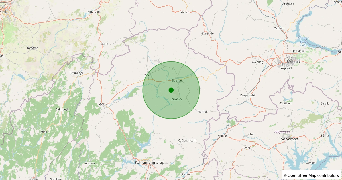 Son 7 gün içinde Ekinözü noktasından 100 km yarıçap içerisinde meydana gelen diğer depremler: