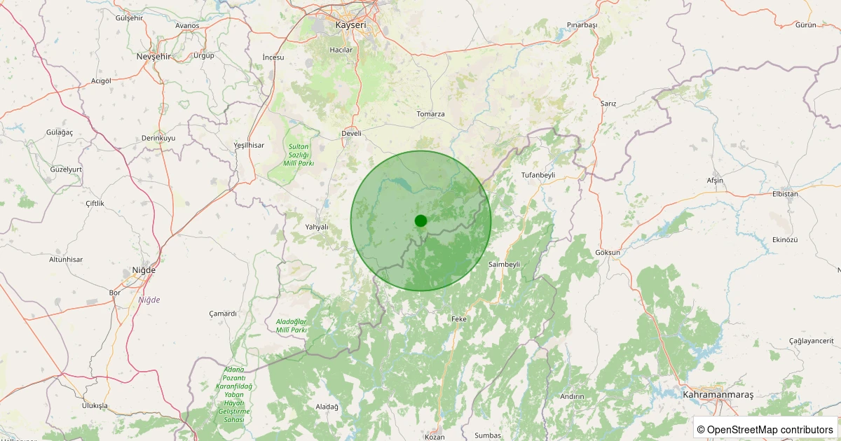 Son 7 gün içinde Develi - Yaylacık noktasından 100 km yarıçap içerisinde meydana gelen diğer depremler: