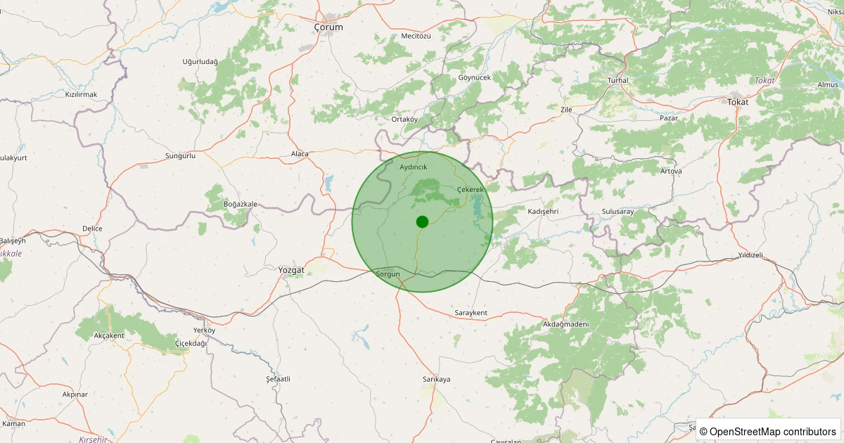 Son 7 gün içinde Sorgun - Kapaklı Köyü noktasından 100 km yarıçap içerisinde meydana gelen diğer depremler: