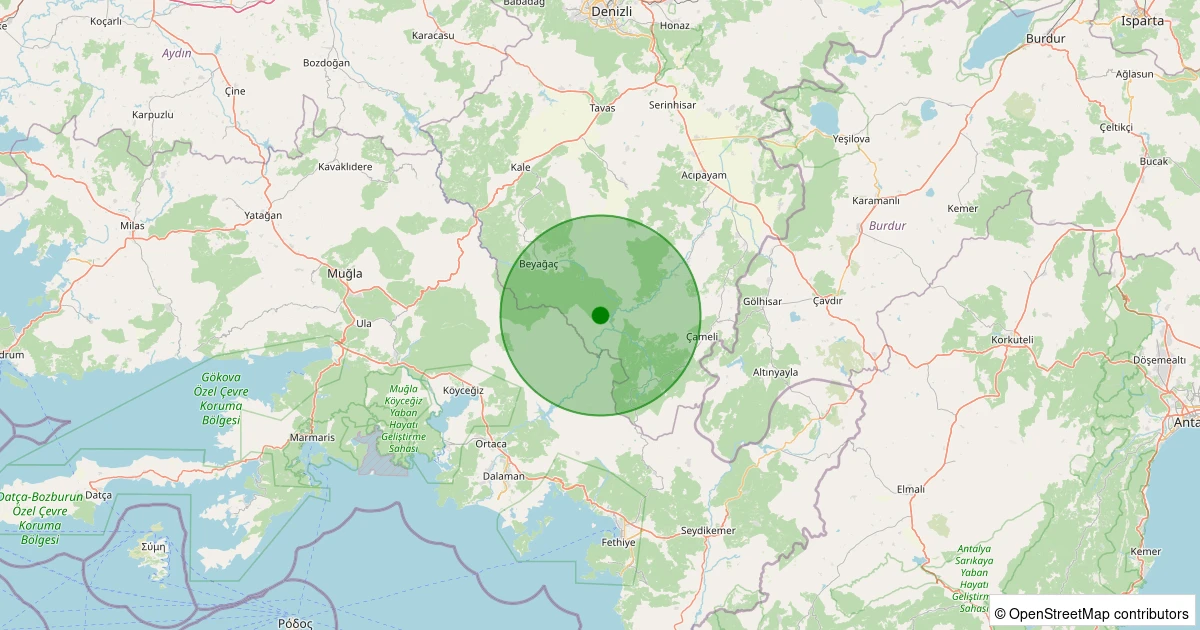 Son 7 gün içinde Acıpayam - Karaismailler noktasından 100 km yarıçap içerisinde meydana gelen diğer depremler:
