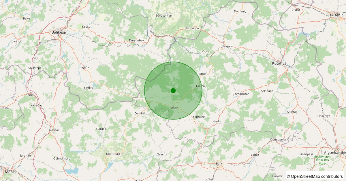 Son 7 gün içinde Simav noktasından 100 km yarıçap içerisinde meydana gelen diğer depremler: