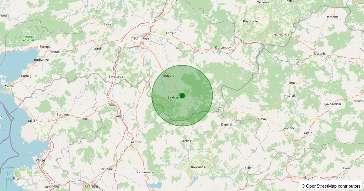 Son 7 gün içinde Sındırgı - Çaygören noktasından 100 km yarıçap içerisinde meydana gelen diğer depremler: