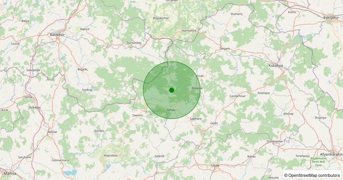 Son 7 gün içinde Simav - Yemişli Köyü noktasından 100 km yarıçap içerisinde meydana gelen diğer depremler: